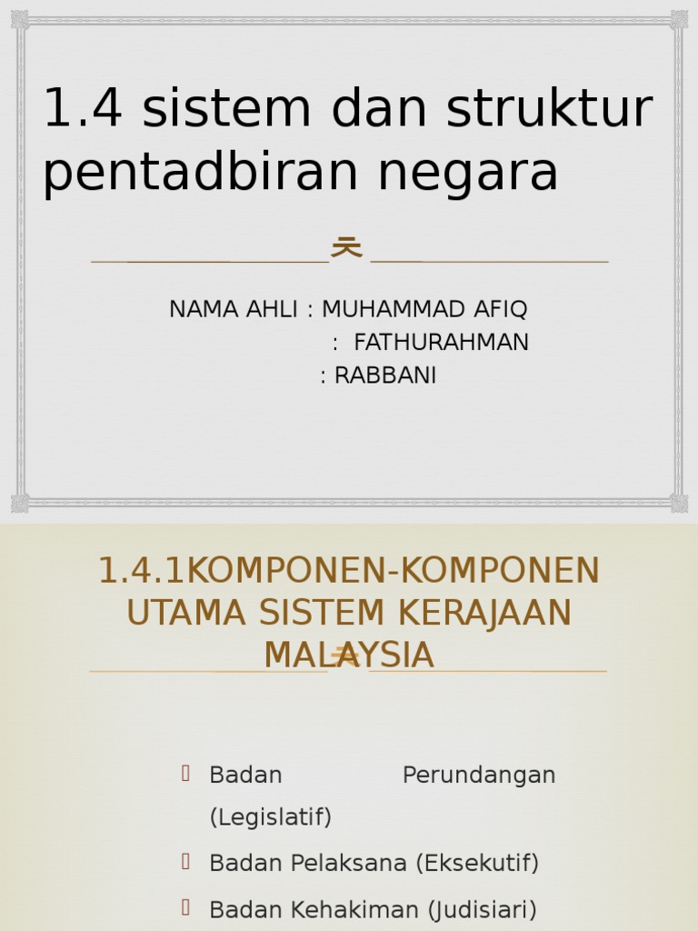 Sistem pentadbiran era kemerdekaan sistem pentadbiran di malaysia selepas negara mencapai kemerdekaan ialah berasaskan demokrasi berparlimen dan raja berperlembagaan. By nur az 85206 views. 9 jentera pentadbiran kerajaan pers. Development of governmental administration in malaysia. Kabinet memberi arahan yang dilaksanakan oleh jentera pentadbiran kerajaan persekutuan.