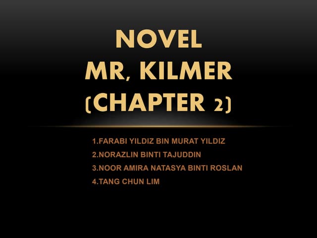 Form 5 Novel Dear Mr. Kilmer Chapter 6 from image.slidesharecdn.com Dear mr kilmer chapter 2. Synopsis, summary, characters and characteristic, moral value, themes, event, setting, questions + answers : The main character of this story, richard knight depicts uprightness throughout the story and there are a few incidents from this novel that reflects his. The novel that i read was 'dear mr kilmer' by anne schraff. Download lagu novel mr kilmer chapter 2 mp3 dapat kamu download secara gratis di metrolagu. Seremban architect of the nation 11 months ago. The statement family supports family was not true in the beginning of the. These powerpoint slides show the steps of answering the novel questions.